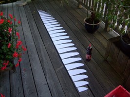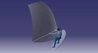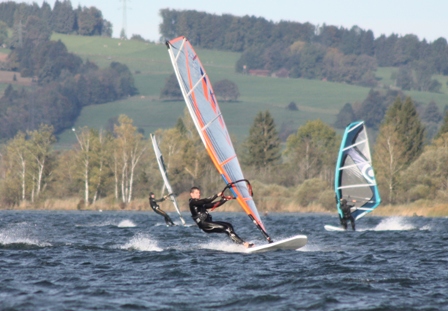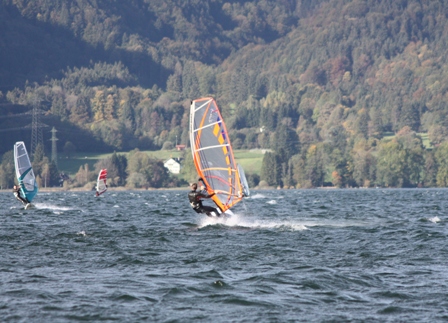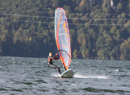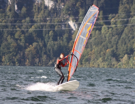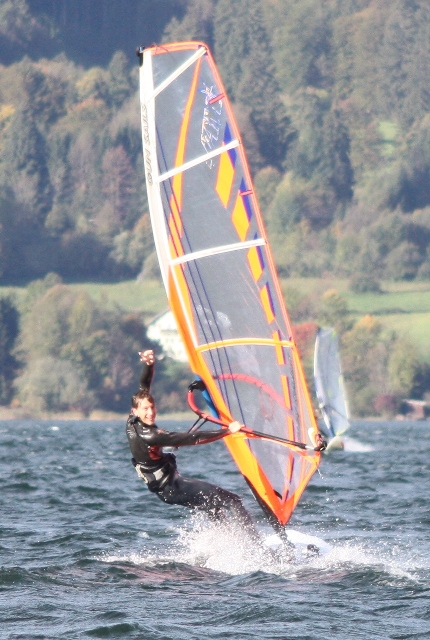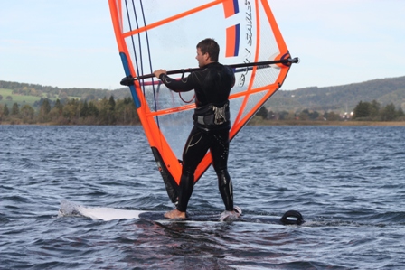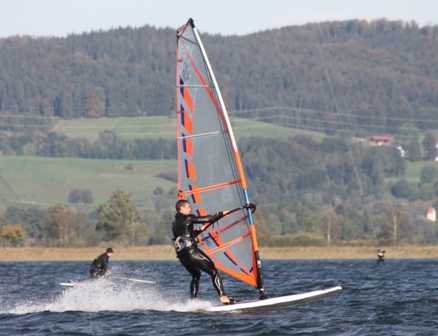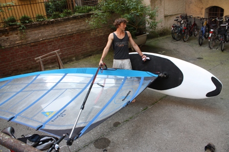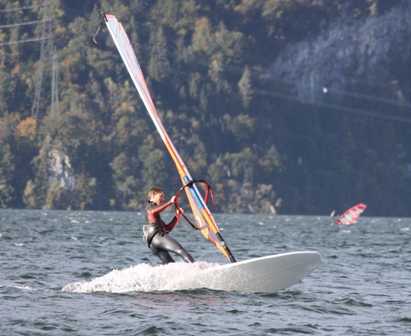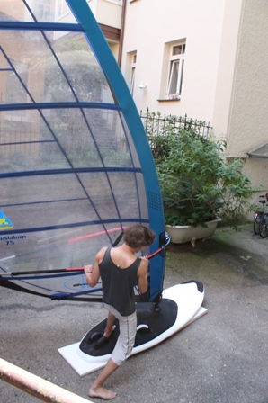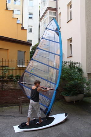 Erste Tests: Es hat sich gezeigt, dass dieses Brett eine Menge Spass macht und ansprechend funktioniert. Es gleitet vernünftig an, macht gut Höhe und bleibt auch bei Chop weitgehend ruhig. Als Schwächen wurde soweit die Moosgummibeschichtung identifiziert, welche vor allem naß barfuß sehr wenig Haftung bietet. Mit Neoprenschuhen ist dies kein Problem. Zudem wurde von einem Freund bemängelt, dass das Brett leicht zum anluven tendiere und sich in der Gleitfahrt noch etwas freier anfühlen könnte. Optimierungsmöglichkeiten für diese beiden Punkte und noch weitere werden demnächst z.B. durch Veränderung der Mastfußposition untersucht. |