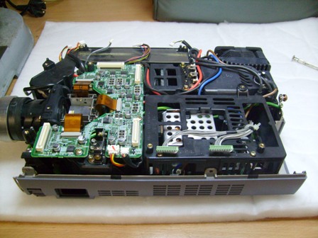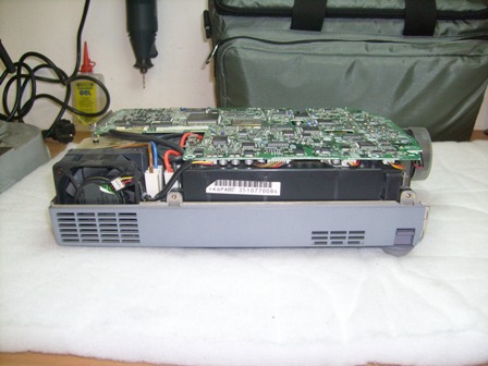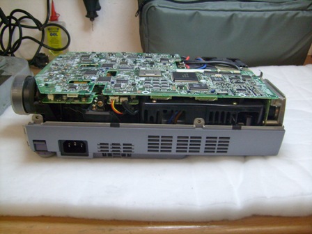 Dieser Beamer war bei ebay sehr günstig zu bekommen, weil er laut Angabe nicht mehr funktioniert hat. Der Artikelbeschreibung war zu entnehmen, dass die Glühbirne erst die Hälfte der Lebensdauer hinter sich habe und der Defekt plötzlich gekommen sei. All das ließ auf einen Wackelkontakt bzw. einen einfach zu behebenden Fehler schließen, weshalb ich den Beamer gekauft habe.