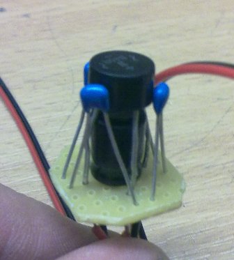 Gleichrichtung: 1xBrückengleichrichter, 1xGlättungskondensator Elko 200µF, 4xKeramik-Enstörkondensatoren 100nF