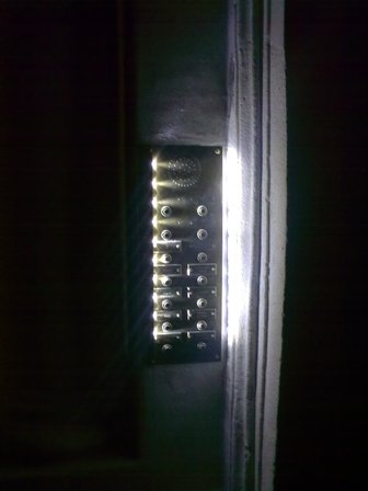 Diese Klingelbeleuchtung enstand im Auftrag für eine Wohnanlage in München. Die Leiste ist so konzipiert, dass sie ohne Änderungen des bestehenden Klingelschilds zusätzlich angebracht werden kann. Die LED-Leuchten arbeiten äußerst sparsam und werden über einen Dämmerungsschalter lichtabhängig geschalten.